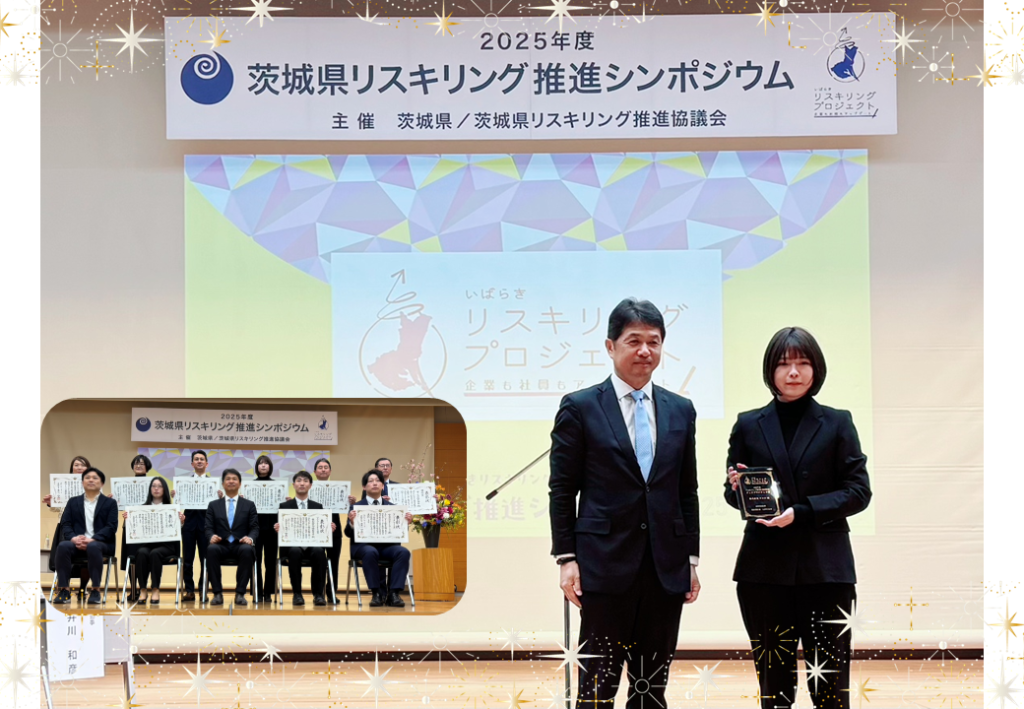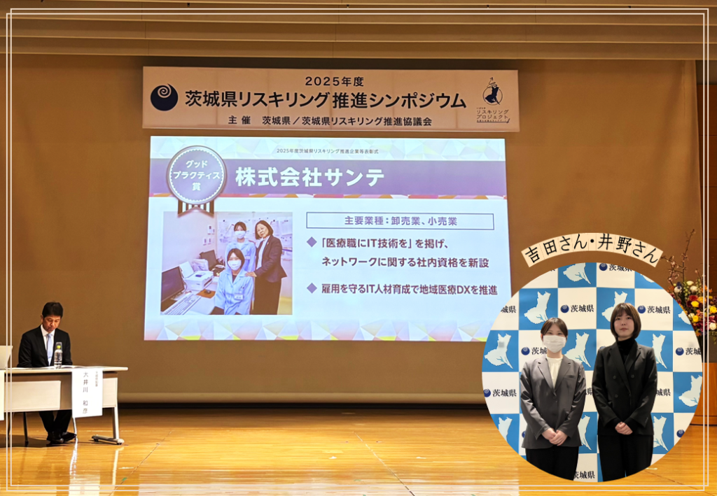 この度、株式会社サンテは「2025年度 茨城県リスキリング推進企業等表彰」においてグッドプラクティス賞に選ばれました。そして、2月10日に行われたリスキリング推進シンポジウム2025に参加し、大井川知事より表彰していただきました。
